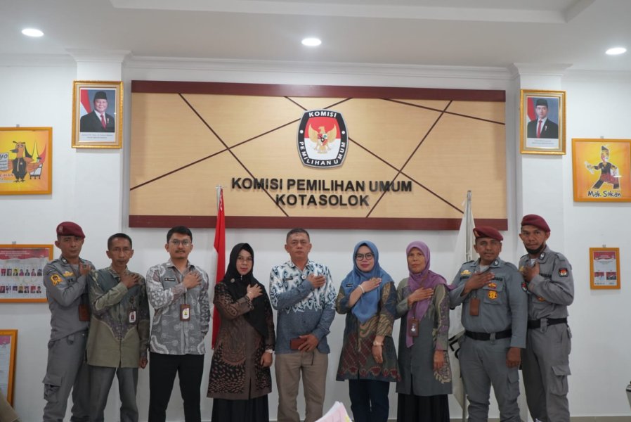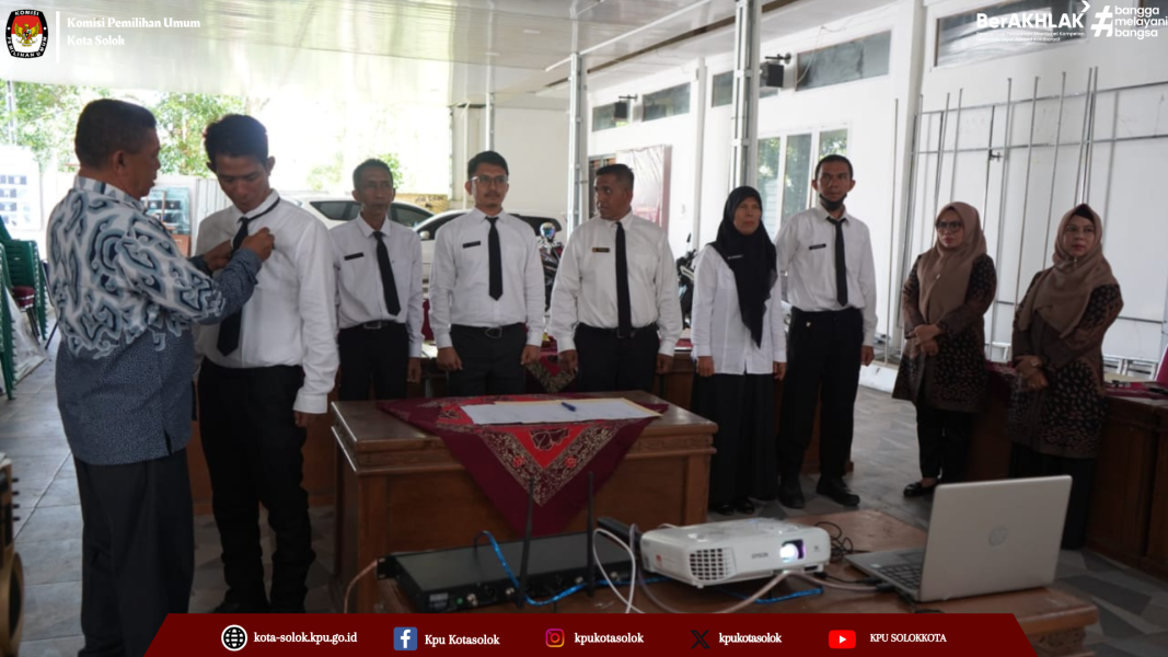 kota-solok.kpu.go.id – Kamis (23/05) pagi, Komisi Pemilihan Umum (KPU) Kota Solok bekali dan ambil sumpah/janji enam Pegawai pemerintah dengan Perjanjian Kerja (PPPK). Pembekalan dan pengambilan sumpah/janji ini dilaksanakan di Ruang Peretemuan Kantor KPU Kota Solok bersamaan dengan seluruh PPPK di Lingkungan Sekretariat Jenderal KPU Tahun 2024 Periode I. Edi Erawadi selaku Plt. Sekretariat KPU Kota Solok menyampaikan bahwa kegiatan pembekalan dan pengambilan sumpah/janji terhubung melalui aplikasi Zoom, “Berdasarkan undangan dari Sekretaris Jenderal KPU RI tanggal 22 Mei 2025 Nomor 626/SDM.02.-Und/04/2025, pelaksanaan Pembekalan dan Pengambilan Sumpah/Janji PPPK di Lingkungan Sekretariat Jenderal KPU tahun 2024 Periode I dilaksanakan secara daring melalui Zoom. Dengan kata lain kegiatan ini secara serentak dilaksanakan di seluruh KPU di Indonesia.” Edi juga menjelaskan keenam PPPK yang dilantik adalah Pegawai Pemerintah Non Pegawai Negeri (PPNPN) KPU Kota Solok yanng dintakan lulus dalam tes PPPK, “Nama-nama teman-teman yang dilantik menjadi PPPK di KPU Kota Solok yaitu Adsalman, Evi Chandra, Kasmawati, Novembra, Vilgrimaz Abrar, dan Yopi Andika. Mereka adalah PPNPN yang sudah mengabdi di KPU Kota Solok bertahahun-tahun, tepatnya lebih dari dua tahun. Kemudian mengikuti tes PPPK dan dinyatakan lulus.”. “Saya ucapkan selamat kepada teman-teman yang dilantik, semoga dapat menjalankan tugas dengan baik dan amanah,” tutup Edi pada kegiatan tersebut.