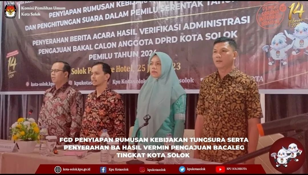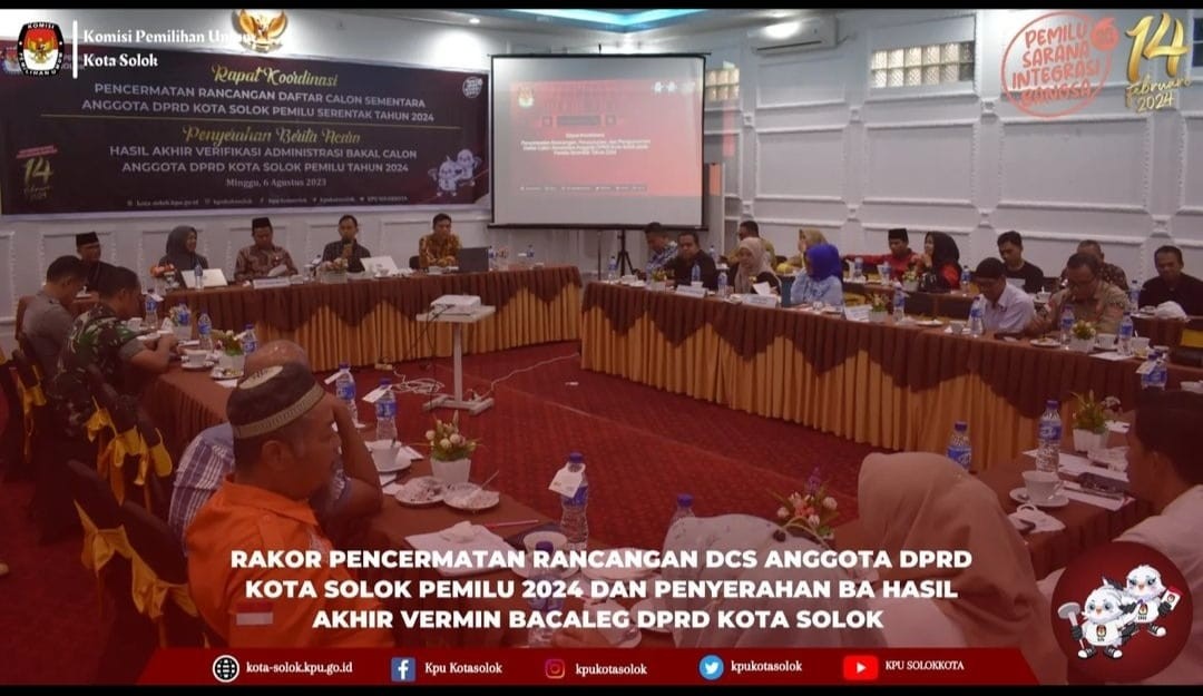 Solok, kota-solok.kpu.go.id – Tahapan pemilu terus berlajut, Komisi Pemilihan Umum (KPU) Kota Solok serahkan berita acara akhir hasil verifikasi administrasi dokumen bakal calon anggota DPRD Kota Solok untuk pemilu 2024 kepada partai-partai politik se Kota Solok Minggu (6/8) siang. Ketua KPU Kota Solok, Ariantoni menyerahkan berita acara hasil Akhir Verifikas Administrasi kepada partai Politik Peserta Pemilu disaksikan Bawaslu Kota Solok. Ia menyampaikan bahwa melalui berita acara yang diserahkan kepada partai politik (parpol), diharapkan catatan-catatan yang diberikan dipahami dan agar dilakukan perbaikan terhadap dokumen calon yang Tidak Memenuhi Syarat (TMS), “Penyerahan Berita Acara hasil akhir verifikasi administrasi menandai masuknya masa pencermatan rancangan Daftar Calon Sementara (DCS), pada masa ini parpol diperbolehkan untuk melakukan pergantian nomor urut calon. Penggantian bakal calon sesuai Jumlah yang didaftarkan pada saat pengatuan awal Tanggal 1 Mei sampai 14 Mei lalu,” terangnya. Ketua Divisi Teknis, Tomi Farto, menegaskan agar parpol mencermati data bakal calon yang terkendala dan berkomunikasi dengan Dewan Pimpinan Pusat (DPP) partai masing-masing jika akun Silon dipegang oleh DPP, “KPU Kabupaten/Kota tidak dapat mengambil keputusan di luar ketentuan peraturan perundangan. Kesalahan penginputan pada Silon akan berpengaruh dalam menentukan apakah bakal calon Memenuhi Syarat (MS) atau TMS.” Tomi juga menjelaskan jika setelah masa Pencermatan Rancangan DCS, bila ada data bakal calon yang MS tiga orang dan hanya laki-laki, akan berakibat tidak terpenuhinya 30%, calon perempuan, maka yang bisa ditetapkan hanya 1 (satu) bakal calon laki-laki, ini sesuai Peraturan KPU No.10 Tahun 2023 . Perwakilan Bawaslu, Budi Santoso, mengharapkan partai politik memaksimalkan catatan-catatan yang diberikan oleh KPU, “Jika ada yang TMS, harap berkonsultasi ke Helpdesk KPU Kota Solok, agar mendapatkan penjelasan sesuai dengan ketentuan Pencalonan Anggota DPRD dalam proses penyempurnaan dokumen bakal calon sehingga seluruh dokumen sesuai dengan ketentuan peraturan perundangan dan dalam rentang waktu yang tersedia.”