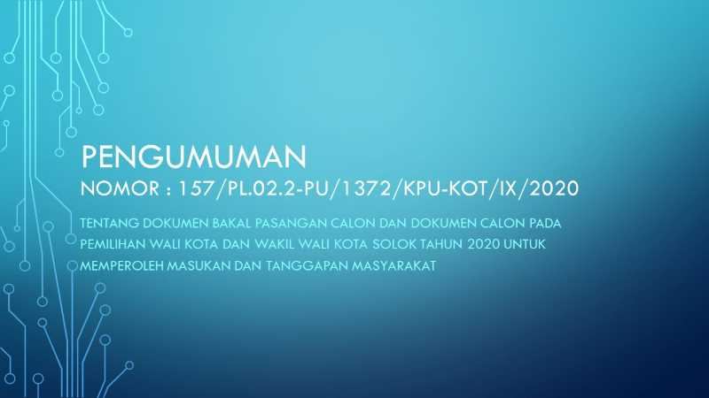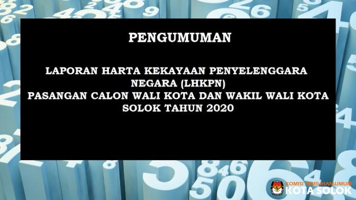 PENGUMUMAN LAPORAN HARTA KEKAYAAN PENYELENGGARA NEGARA (LHKPN) PASANGAN CALON WALI KOTA DAN WAKIL WALI KOTA SOLOK TAHUN 2020