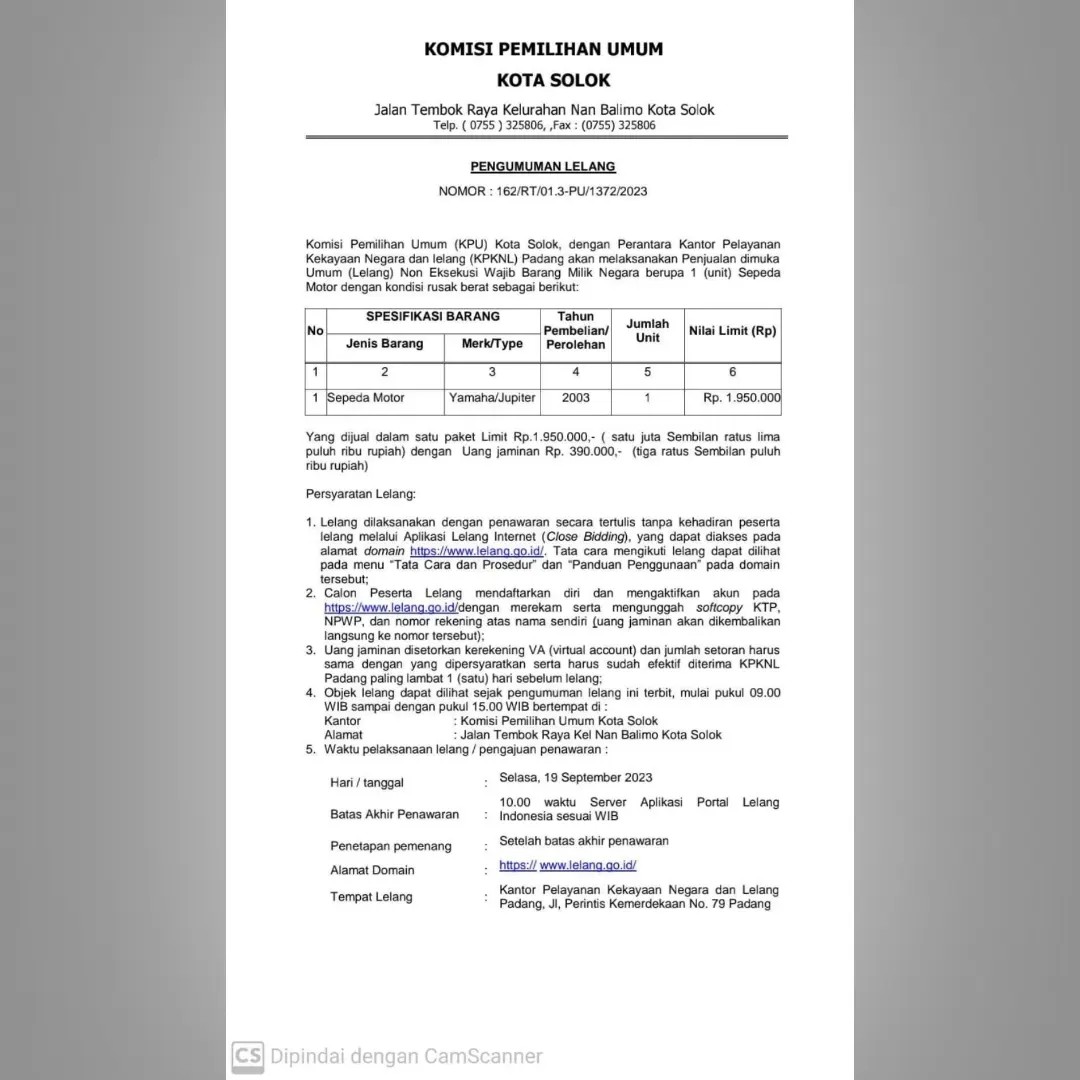 B. Kantor KPU Kota Solok beralamat di Jl. Tembok Raya, Nan Balimo