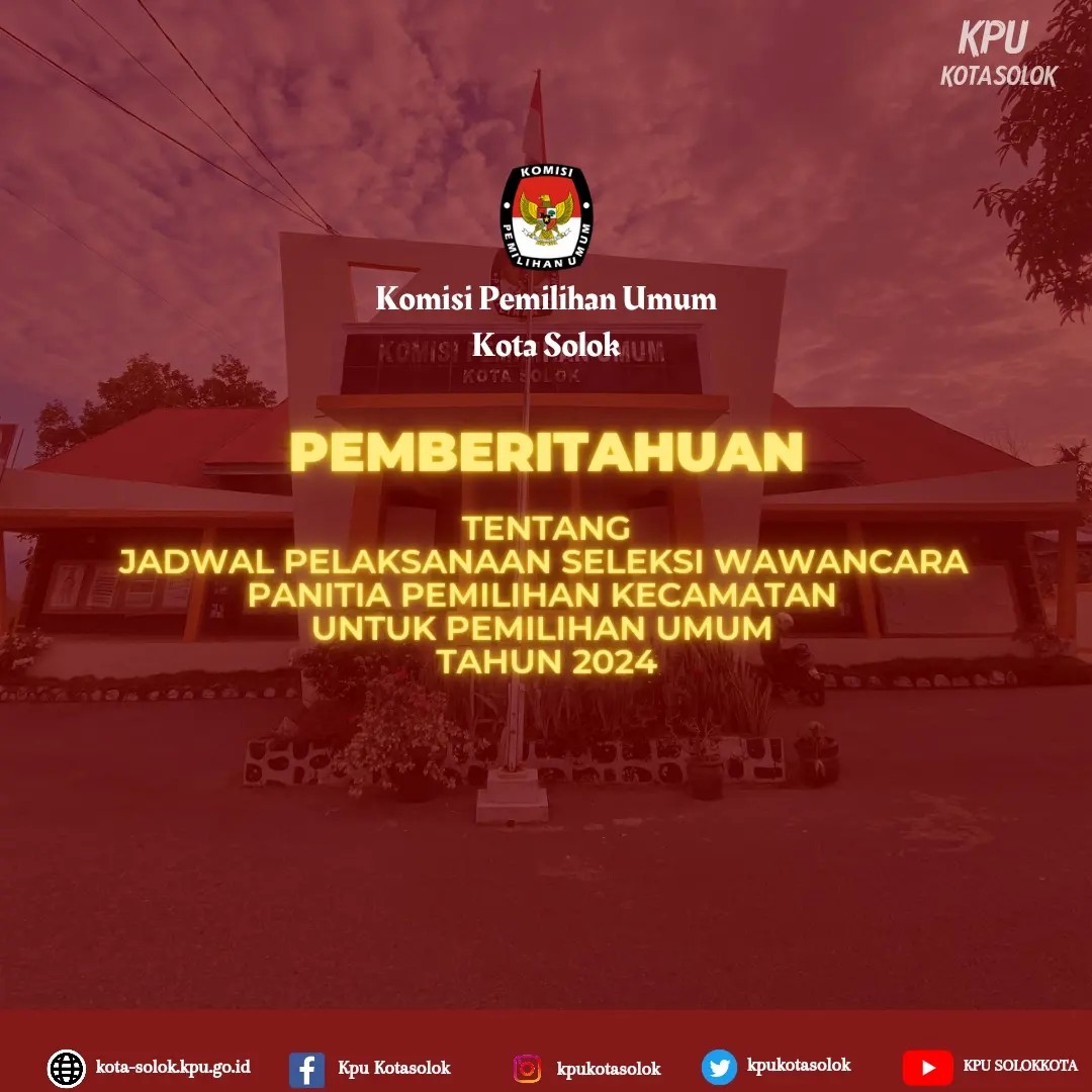#TemanPemilih, Berikut merupakan jadwal pelaksanaan seleksi wawancara PPK untuk Pemilu Tahun 2024 yg dilaksanakan selama 2 hari pada Hari Minggu - Senin, 11-12 Desember 2022 bertempat di Hotel Premier Syariah, Solok. Wawancara dilaksanakan dalam dua gelombang untuk gelombang 1 pada Hari Minggu, 11 Desember 2022 dan gelombang 2 pada Hari Senin, 12 Desember 2022. Daftar nama peserta per gelombang dapat dilihat disini